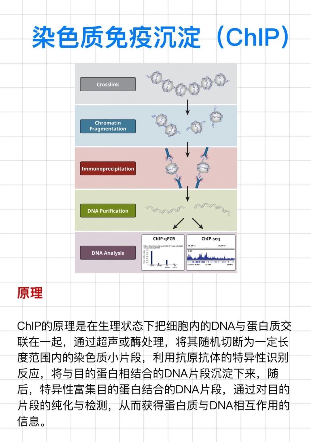 答:染色質(zhì)免疫沉淀(ChIP)實驗是一種重要的生物學(xué)研究方法,旨在通過分析體內(nèi)蛋白質(zhì)與DNA的相互作用,揭示基因表達(dá)調(diào)控、轉(zhuǎn)錄因子功能及表觀遺傳機制。