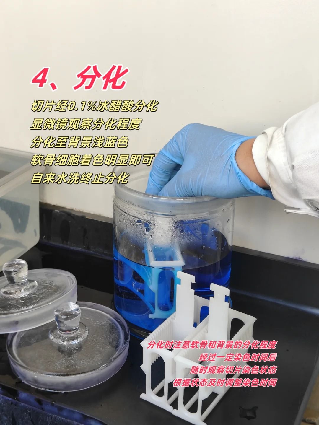Step9:染色完成后,使用95%乙醇或1%鹽酸酒精進行分化,去除多余的染料。分化過程中要在顯微鏡下觀察切片,控制分化效果。分化時間不宜過長,避免過度分化導致染色過淺。