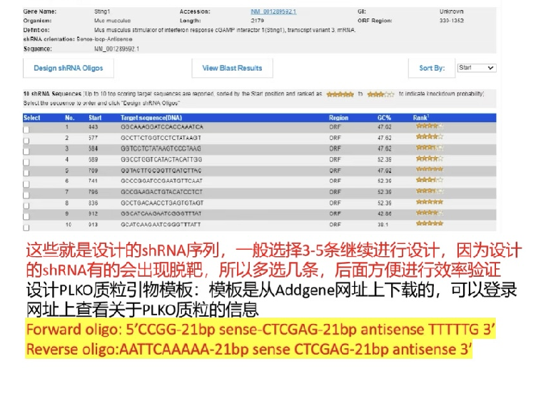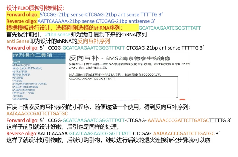 shRNA引物設(shè)計(jì)步驟:(載體為pPLKO.1為例)