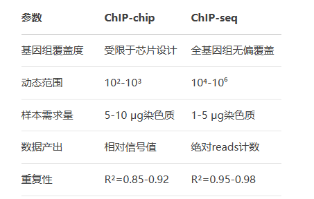對于絕大多數(shù)現(xiàn)代研究,ChIP-seq在分辨率、靈敏度和數(shù)據(jù)質(zhì)量方面具有明顯優(yōu)勢。建議新建項目優(yōu)先考慮ChIP-seq方案,而傳統(tǒng)ChIP-chip仍適用于特定驗證性實驗