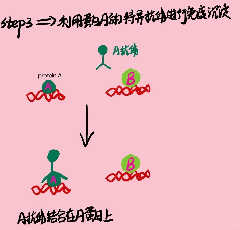 使用特定的抗體對感興趣的蛋白質(zhì)進行免疫共沉淀,將與蛋白質(zhì)結(jié)合的DNA片段一同沉淀下來。