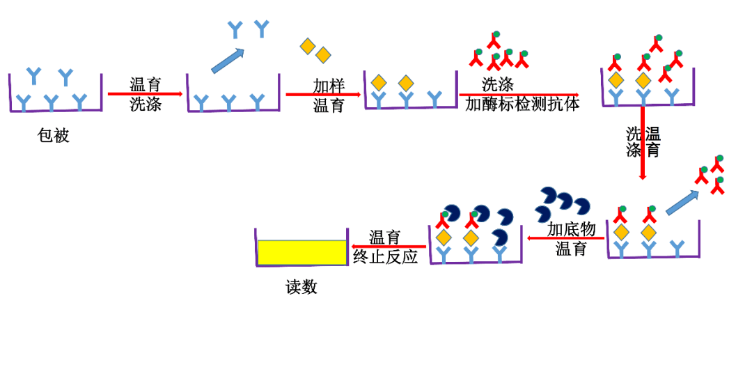 [7]結(jié)果判定:通過測(cè)量有色產(chǎn)物的吸光度,與標(biāo)準(zhǔn)曲線對(duì)照,計(jì)算待測(cè)樣本中抗原或抗體的含量。