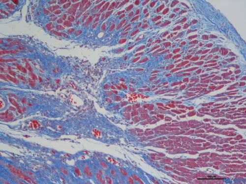 Step6:復(fù)染:接下來(lái),使用Masson麗春紅酸性復(fù)紅液對(duì)切片進(jìn)行復(fù)染。這一步的目的是增強(qiáng)膠原纖維和其他組織結(jié)構(gòu)的顯色效果。