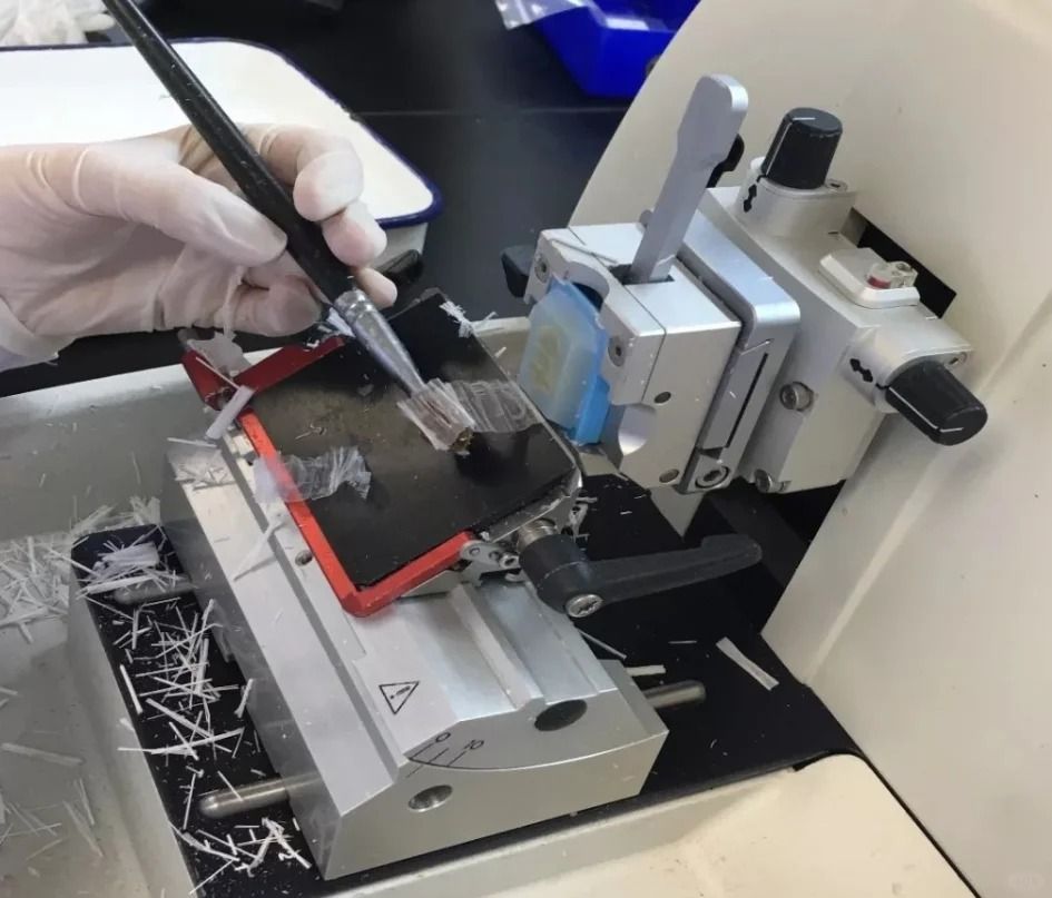 在切片過程中,保持切片刀的鋒利也是非常重要的。一個鋒利的切片刀可以減少切片時的阻力,使切片更加平滑和連續(xù)。因此,實驗者需要定期檢查和更換切片刀,以確保其鋒利度。