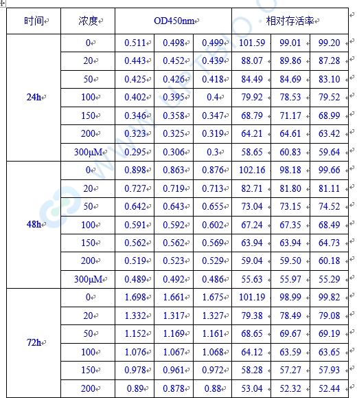 表2:CCK8法檢測(cè)各組細(xì)胞OD值(450nm)及相對(duì)存活率-P53抑制劑
