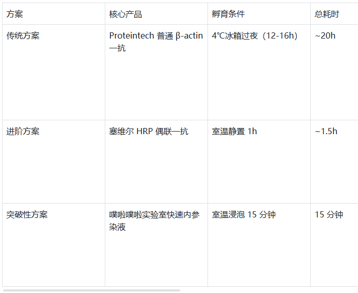 作為日均處理 4-8 塊膠的 WB 實(shí)驗(yàn)高頻操作者,親測(cè)噗啦噗啦實(shí)驗(yàn)室快速內(nèi)參染液后,徹底顛覆傳統(tǒng)內(nèi)參檢測(cè)認(rèn)知 —— 其將 WB 內(nèi)參檢測(cè)耗時(shí)從傳統(tǒng)方案的 20h、進(jìn)階方案的 1.5h,直接壓縮至15 分鐘,效率足足提升 60-80 倍!更關(guān)鍵的是,條帶清晰度、特異性與傳統(tǒng)方法毫無(wú)差異,在高樣本量實(shí)驗(yàn)場(chǎng)景下,不僅大幅解放人力,更直接降低時(shí)間成本,堪稱(chēng) WB 實(shí)驗(yàn)的 “效率革命利器”。