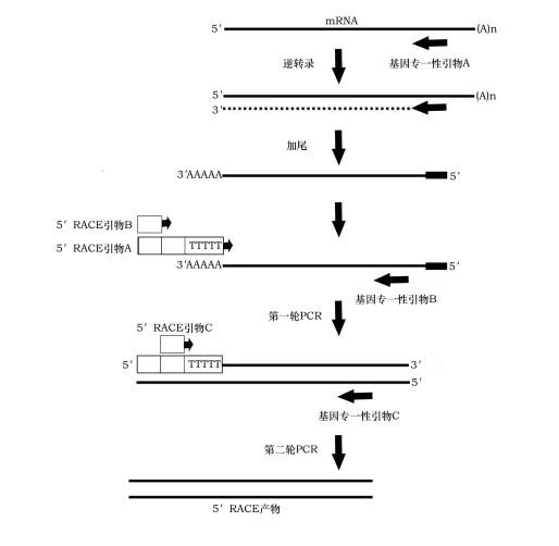 若擴增效果仍然欠佳,則讓NGSP(巢式引物)的5'末端與GSP的3'末端有5~15個核苷酸的重疊,有助于提高二輪巢式擴增時的特異性。