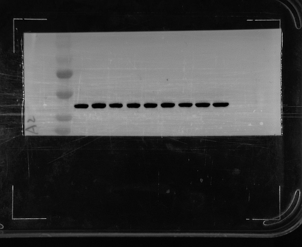 (10)顯影:ECL A和B液按體積1:1混合后均勻滴加在膜上,按需求設置曝光時間及曝光類型,開始曝光,曝光結束后保存圖片并導出圖片。