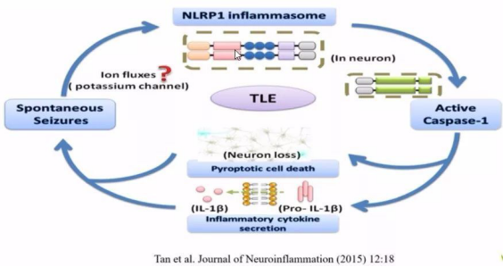 神經(jīng)系統(tǒng)疾病包括腦損傷,癲癇等。以癲癇為例,研究發(fā)現(xiàn),癲癇發(fā)作可通過鉀離子外流等途徑激活NLRP1炎癥體,進(jìn)而激活依賴Caspase-1的焦亡途徑,導(dǎo)致癲癇進(jìn)一步發(fā)展。