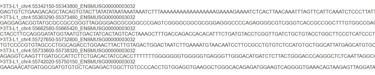 該數(shù)據(jù)庫(kù)采用了基因組瀏覽器的展示形式,每一行稱(chēng)之為track。最上方顯示了檢索的范圍為小鼠4號(hào)染色體的55342150-55750150bp,即目的基因上下游各20kb,可調(diào)節(jié)滑輪來(lái)控制檢索的位置。黑色字體對(duì)應(yīng)行表示每種方法檢測(cè)到的該區(qū)域reads覆蓋結(jié)果(如P300、DNA超敏位點(diǎn)、轉(zhuǎn)錄因子結(jié)合位點(diǎn)、組蛋白修飾及染色質(zhì)修飾因子等),有些基因還會(huì)有紅色字體,為對(duì)應(yīng)行為綜合多種方法得到的增強(qiáng)子區(qū)域的結(jié)果。由圖可知,該數(shù)據(jù)庫(kù)在這個(gè)范圍內(nèi)共預(yù)測(cè)到6個(gè)與該基因相關(guān)的增強(qiáng)子,從左到右依次為1-6,2號(hào)、3號(hào)、6號(hào)增強(qiáng)子在幾種增強(qiáng)子特征物處都被檢測(cè)到,說(shuō)明這個(gè)位置是潛在的增強(qiáng)子所處的位置,可作為我們的重點(diǎn)關(guān)注對(duì)象。點(diǎn)擊show the details可查看每個(gè)增強(qiáng)子的細(xì)節(jié)(包括增強(qiáng)子ID、增強(qiáng)子在染色體上的位置等),點(diǎn)擊download也可下載預(yù)測(cè)到的每個(gè)增強(qiáng)子的序列,用于后續(xù)CHIP實(shí)驗(yàn)的引物設(shè)計(jì)。