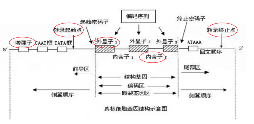 說完了非編碼區(qū),我們再來看看編碼區(qū)。編碼區(qū)主要由內(nèi)含子和外顯子組成,真核生物絕大部分是斷裂基因,內(nèi)含子和外顯子交替排布。