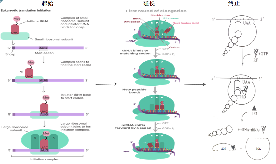 我們來了解下翻譯的基本過程。翻譯的基本過程也分為三個:翻譯起始、翻譯延長、翻譯終止。
