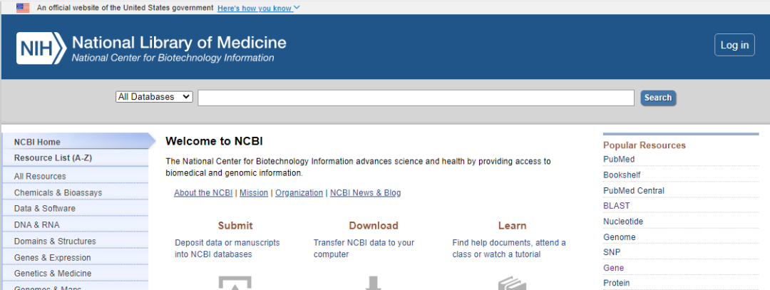 網(wǎng)址:https://www.ncbi.nlm.nih.gov及網(wǎng)頁截圖如下: