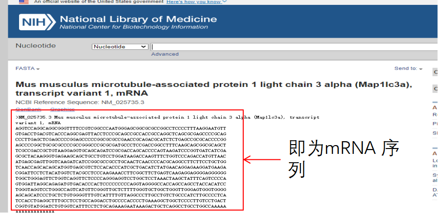 點擊FASTA,即為mRNA序列: