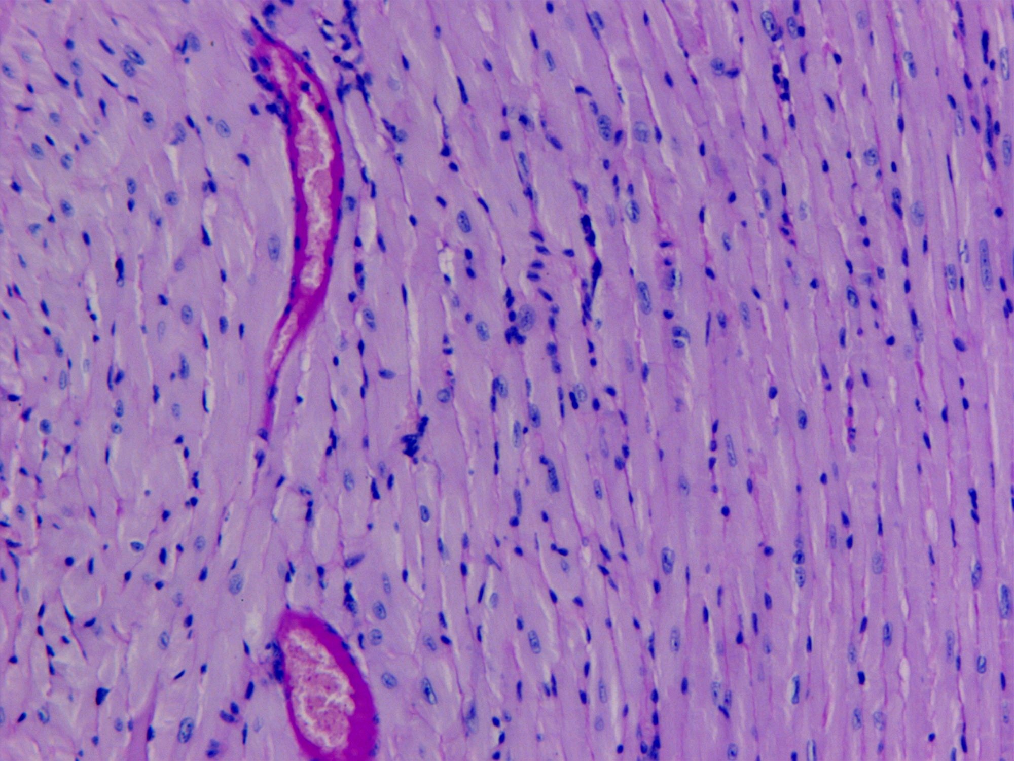 PAS染色糖原染色是病理學中常規(guī)的染色方法之一,氧化劑能氧化糖類及有關物質中的1,2-乙二醇基,使之變?yōu)槎?,醛與Schiff試劑能結合成一種品紅化合物,產(chǎn)生紫紅色。PAS技術常用來顯示糖原和其他多糖,該染色液不僅能夠顯示糖原,還能顯示中性黏液性物質和某些酸性物質,以及軟骨、垂體、霉菌、真菌、色素、淀粉樣物質、基底膜等。