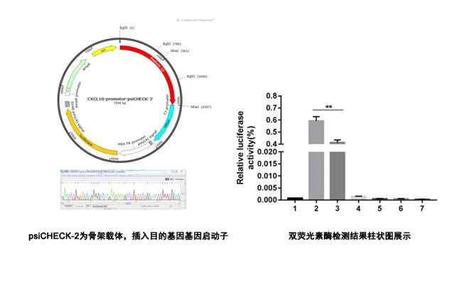 雙熒光素酶檢測轉(zhuǎn)錄因子與基因啟動子區(qū)的結(jié)合及轉(zhuǎn)錄激活情況,右側(cè)為載體圖譜及結(jié)合位點(diǎn)