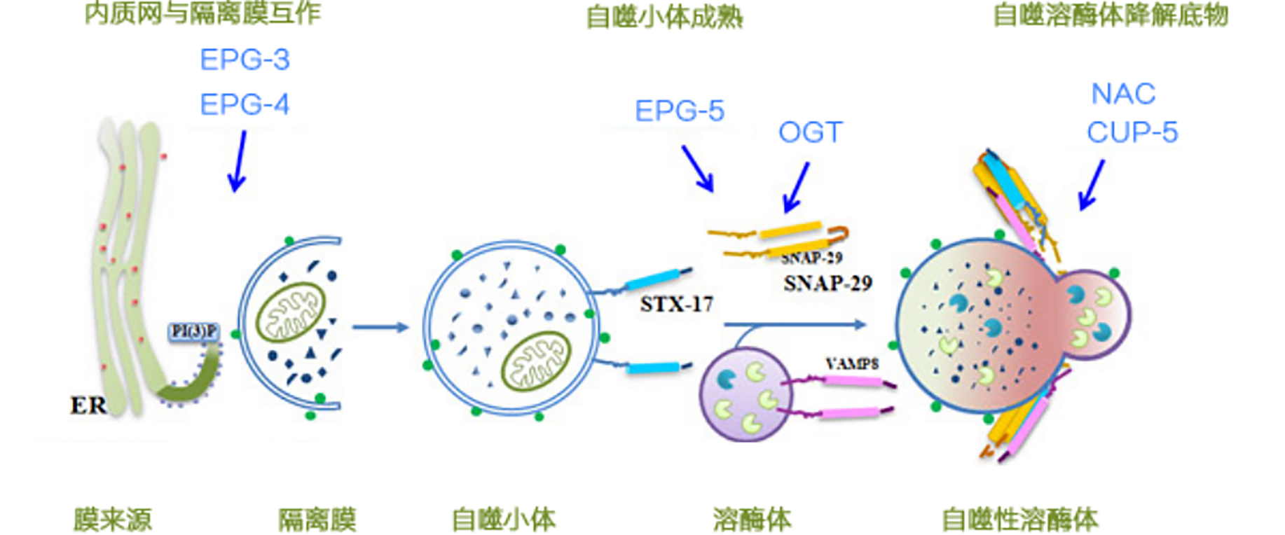 自噬的發(fā)生在時間上可以分為5個階段: